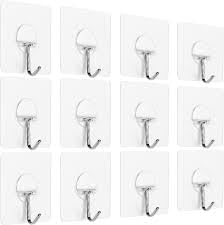Generic - 12 Pieces Stainless Steel Hooks Self Adhesive Wall Hooks Heavy Duty Nail Free Drilling Hooks for Kitchen (Hanging Hook, Clear)