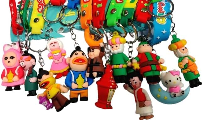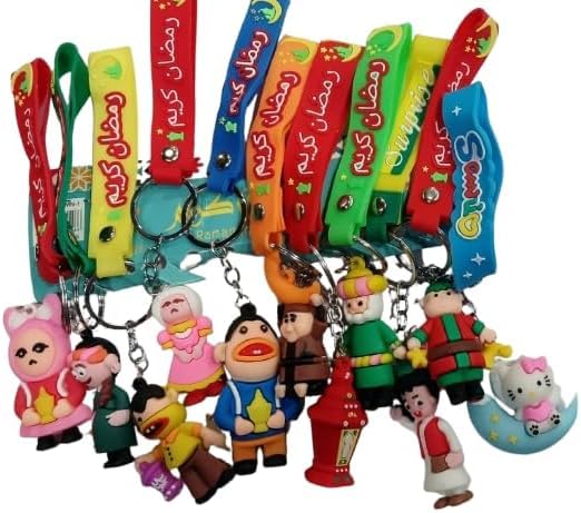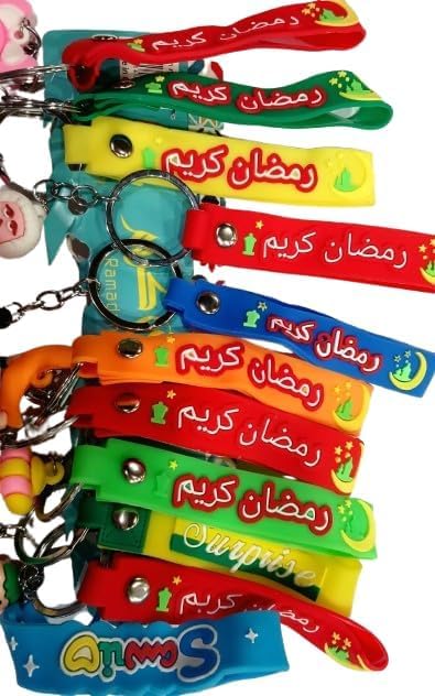 Generic - 12 Ramadan Shapes Keychain with Large Wrist Strap - Intervention of Joy and Pleasure - Fun Colors and Phrases/Ramadan Kareem/Fananees Figures /