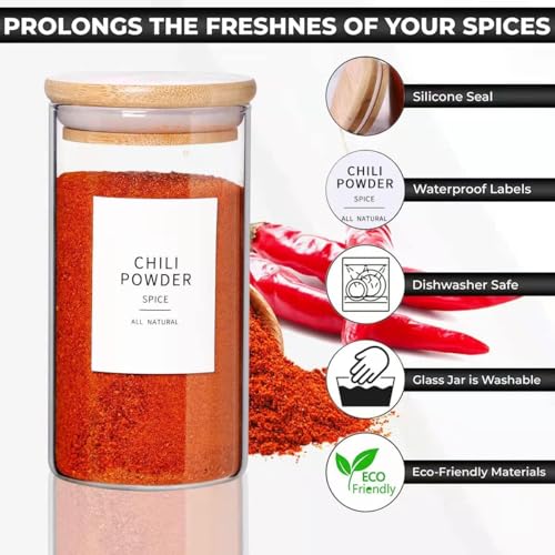 Generic - 12 Square Glass Spice Jars with Natural Bamboo Lids, 5 oz Airtight Herb Containers with 148 Pre-Printed Waterproof Minimalist Spice Labels