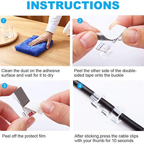 - 【جودة جيدة ولاصق قوي】مشابك الكابلات الشفافة مصنوعة من مادة ABS البلاستيكية الصديقة للبيئة، قم بتقشيرها ولصقها باستخدام لاصق ذاتي قوي 3 ام. يمكن تركيبه بسهولة على الأسطح النظيفة والناعمة والخالية من الزيوت والغبار والماء.