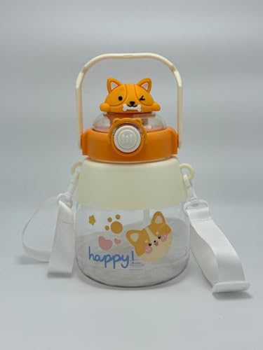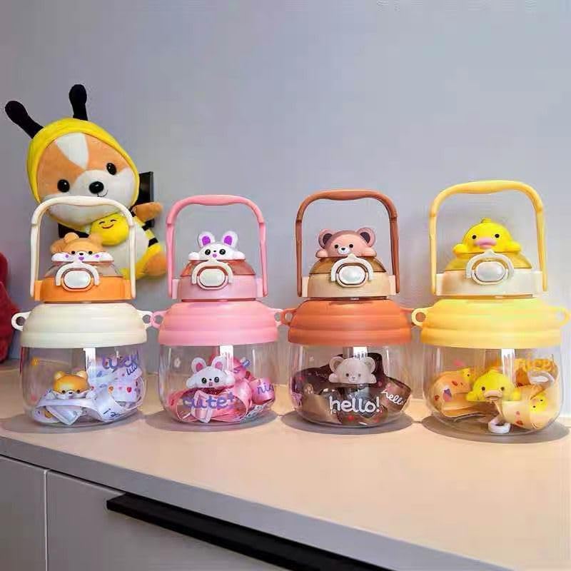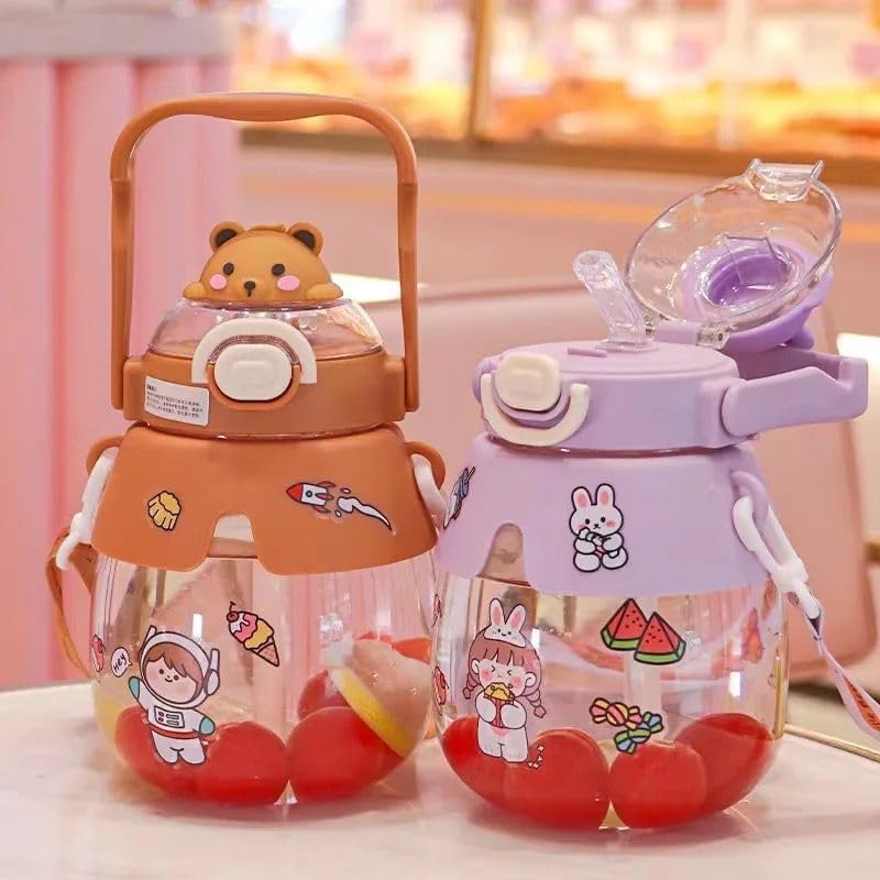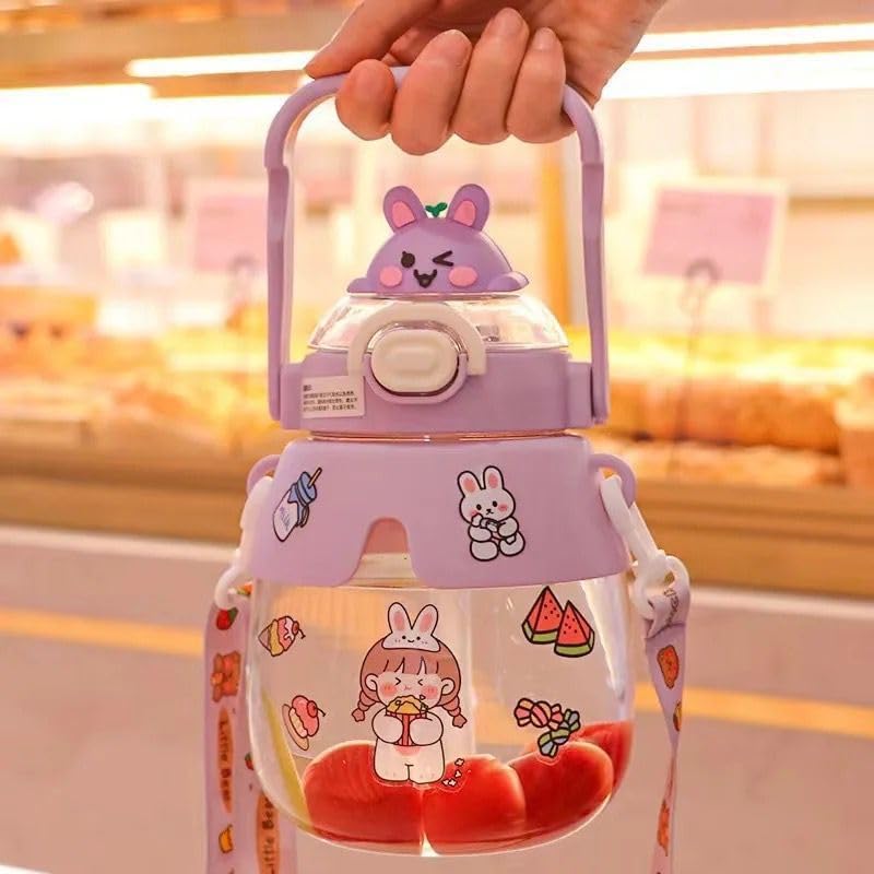 AREXOL - 1200ml Acrylic Water Bottle Bunny Teddy Design Large Dual Lid Straw Leak Proof Durable Kids Adults School Gym Everyday Use