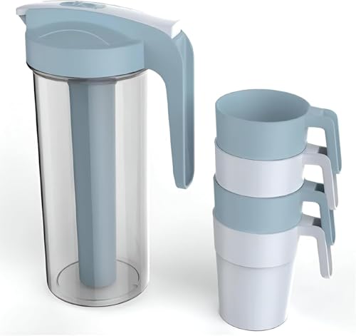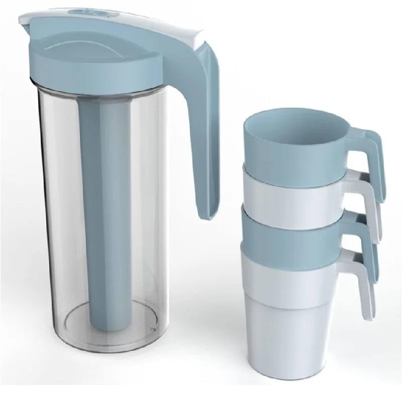 Generic - 1200ml Plastic Decanter for Detox Hot & Cold Drinks with Cooling Bar and 4 Gift Cups Slim Design Fits Refrigerator | By Generic
