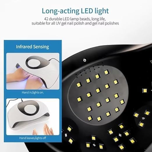 - Fast & Even Curing: 120W power with 42 evenly placed LEDs helps dry gel polish quickly and smoothly without dead zones.