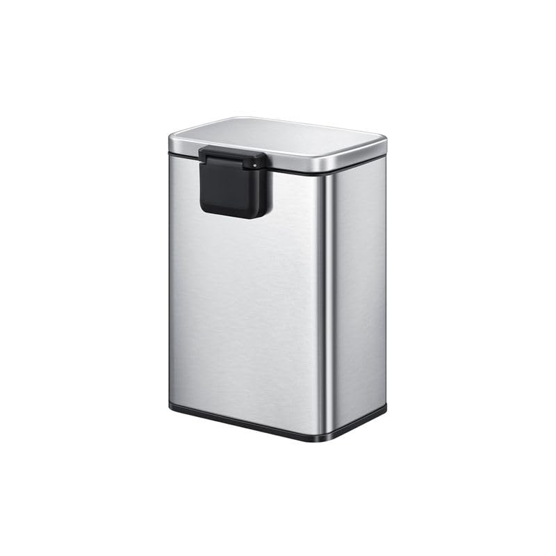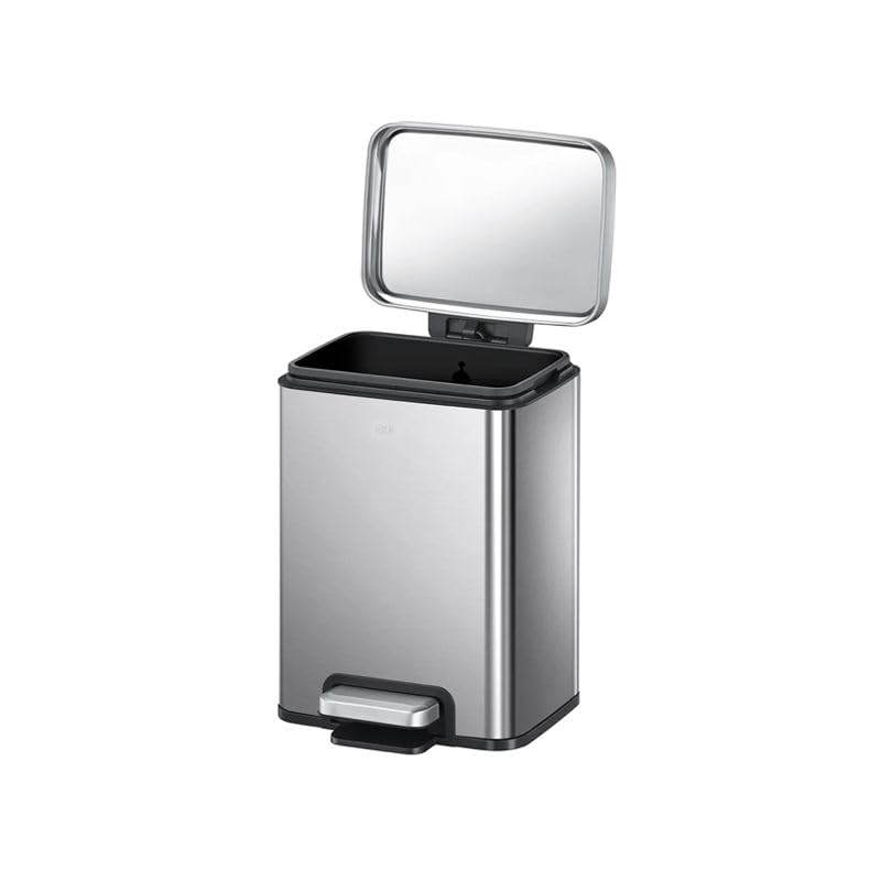 Generic - سلة مهملات سعة 12 لتر بغطاء وسلة داخلية قابلة للازالة، درج صغير مستطيل، ستانلس ستيل غير لامع