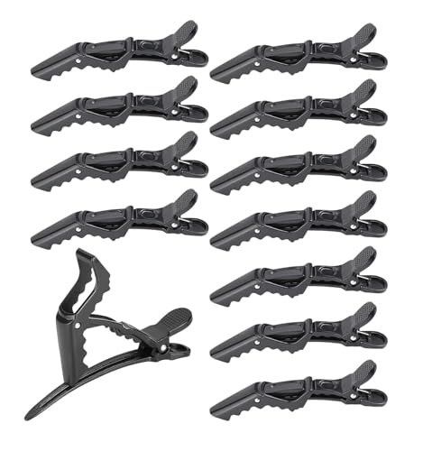 fashion mania - 12pcs Alligator Hair Clips,Direct Non-slip Grip Clips Professional Plastic Salon Hair Clip Wide Tooth Hair Clips for Hair Styling (Black)