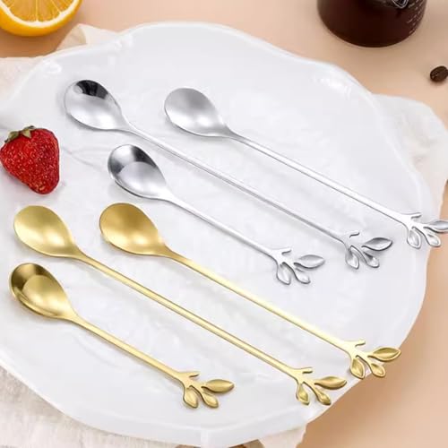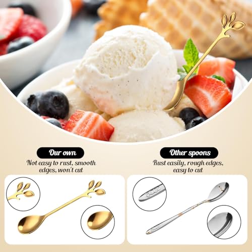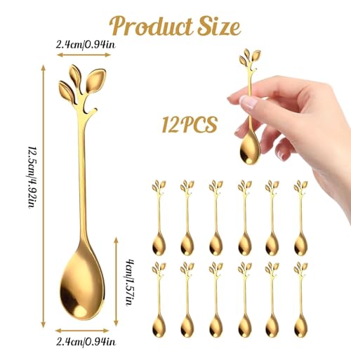 Yenblow - ملعقة قهوة صغيرة أنيقة بتصميم ورقة ذهبية من الفولاذ المقاوم للصدأ بطول 12.45 سم مناسبة للإسبريسو والحلويات وتقليب السكر والآيس كريم والكيك والقهوة والشاي وأواني المائدة، مجموعة 12 ملعقة