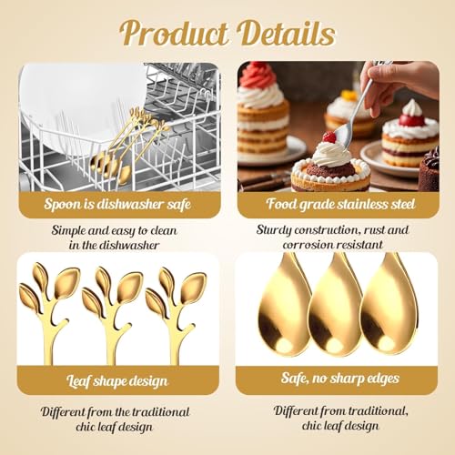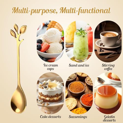 - 【تصميم أوراق الشجر الأنيق】ارتقِ بتجربة تناولك مع مجموعة مكونة من 12 ملعقة قهوة ذهبية فاخرة، تتميز بمقبض فريد على شكل ورقة شجر تضفي لمسة إبداعية وأنيقة على ترتيب طاولتك. مثالية للقهوة والشاي والحلويات والكوكتيلات.
