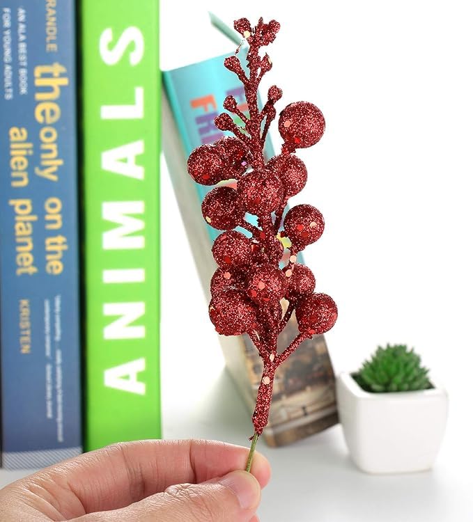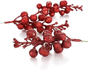 - 12Pcs Glitter Berries Stems, 7.87 Inch Artificial Christmas Berry Picks, Xmas Berry Twig Stems for Christmas Tree Wreath DIY Crafts Home Decor