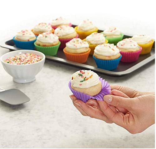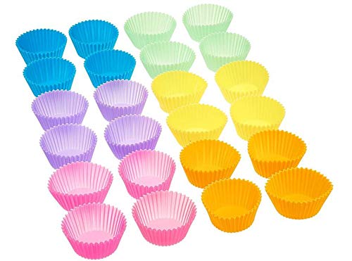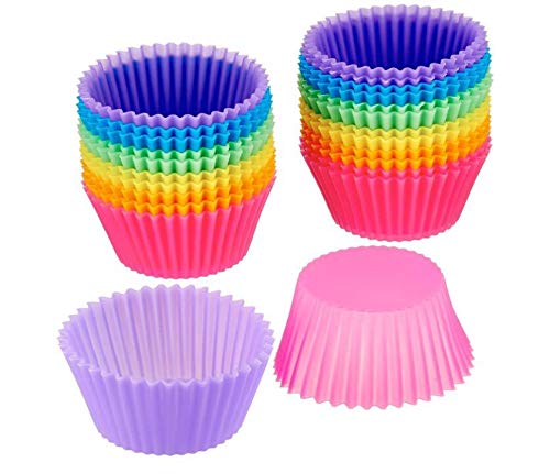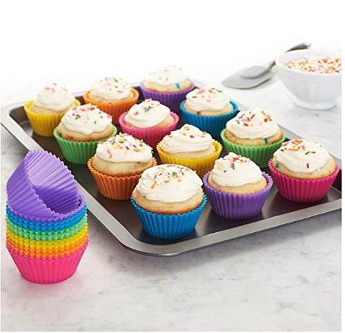 Spaceshoop - طقم قوالب خبز من السيليكون بتصميم دائري لصنع الكب كيك والمافن، مجموعة من 12 قطعة، حجم 7 سم، متعددة الألوان - Moldsyuturoaa58424