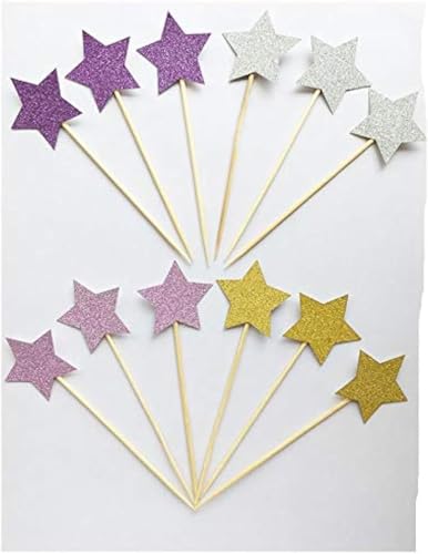 Generic - 12pcs/lot big star Cake Topper Multi Colors Love Flags Single Stick For Wedding Birthday Party Cake Baking Supplies