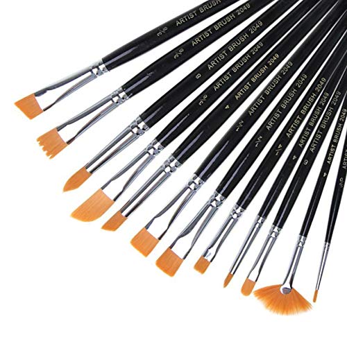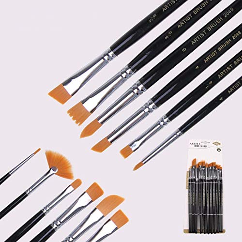 Generic - 12Pcs Watercolor Paint Brush for Children Flat Nylon Painting Brush for Artist Oil Color Acrylic Paint Wood Handle Brush