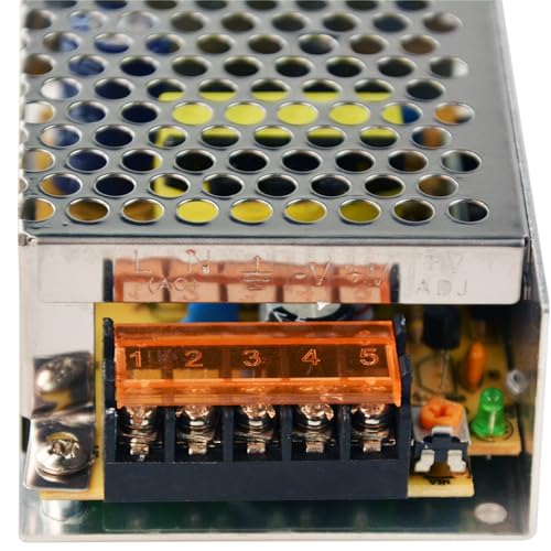 - 【Safety Performance】Built in fuse providing a voltage regulated single output which can be adjusted with an on board potentiometer. This power supply comes with built-in protection functions, including overload protection, overvoltage protection, and short circuit protection. These safety features safeguard your devices and prevent damage caused by excessive current, voltage spikes, or electrical faults