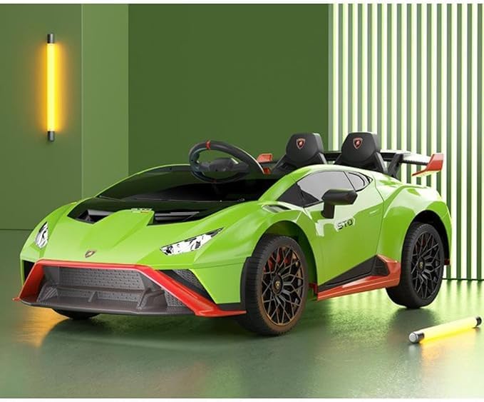- تجربة قيادة حقيقية: تعتمد سيارة الأطفال على تصميم سيارة لامبورجيني جذابة. إضاءة ليد وفانوس أمامي وخلفي وعدادات التابلوه وطارة الدركسيون جميعها تحاكي المركبات الحقيقية، كما أن البوق المدمج والمؤثرات الصوتية لبدء التشغيل تخلق تجربة قيادة حقيقية.