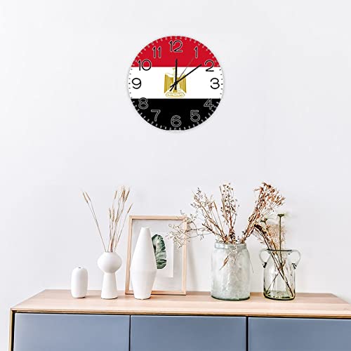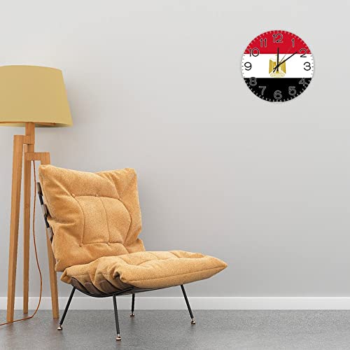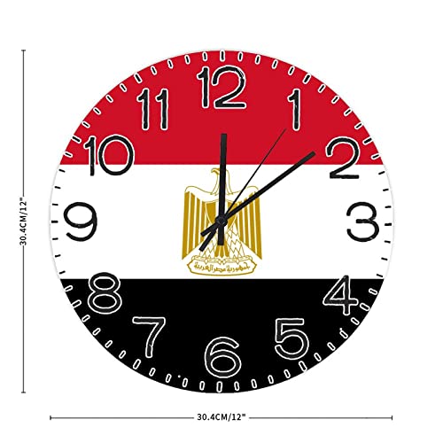 Generic - 12x12in Modern Round Wood Wall Clock National Flag Wooden Arabic Numerals Clock Battery Operated Silent Non-Ticking Egypt Clock for Cottage Kitchen Living Room Bedroom Office Decoration