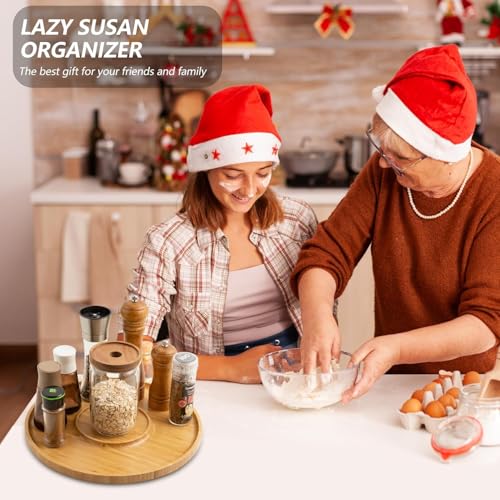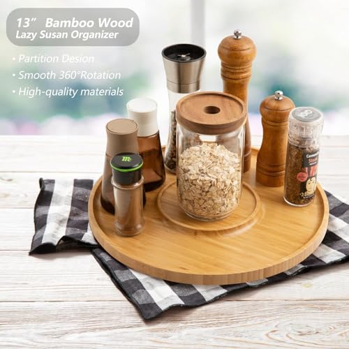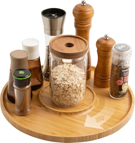 Lemagalu - 13" Bamboo Wood Lazy Susan Organizer Turntable for Kitchen Spice Rack Rotating for Cabinet