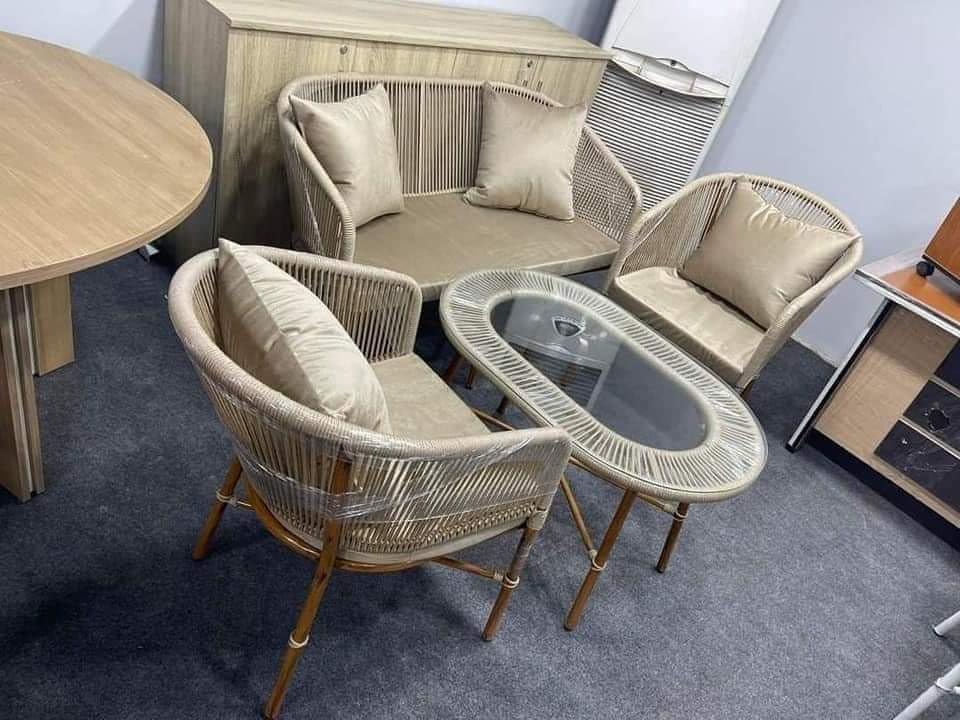 Generic - طقم دوبار كنبه 130 * 70عمق 2كرسي 50 * 50 +تربيزه بيضاوي اللون بيج