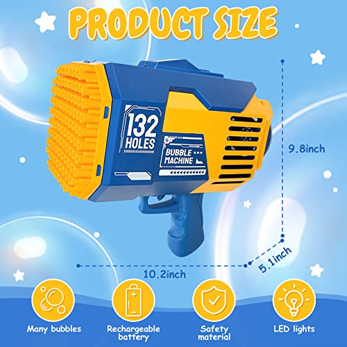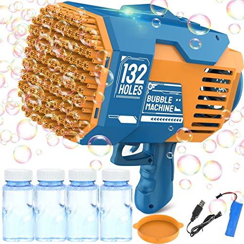 - 🍉 【70 hole bubble blower machine gun blaster】Our rocket boom bubble blower has 132 bubble holes, which can produce tens of thousands of bubbles in a few seconds, bringing you a romantic atmosphere. Our electric bubble machine gun kinder includes 2 * bubbles liquid, 1 * charging cable, 1 * rechargeable battery, super motor, so your bubbles are very smooth.