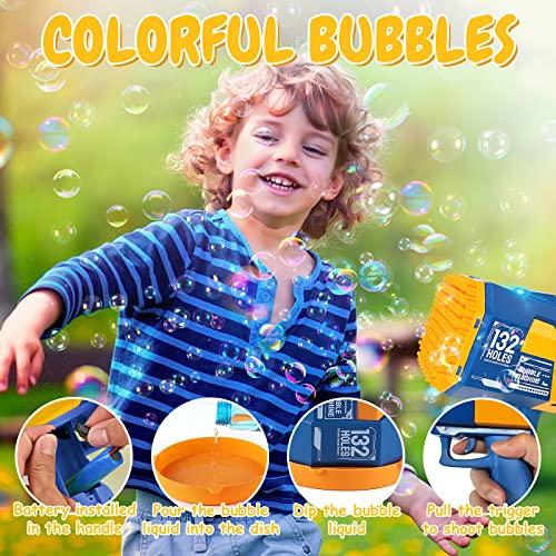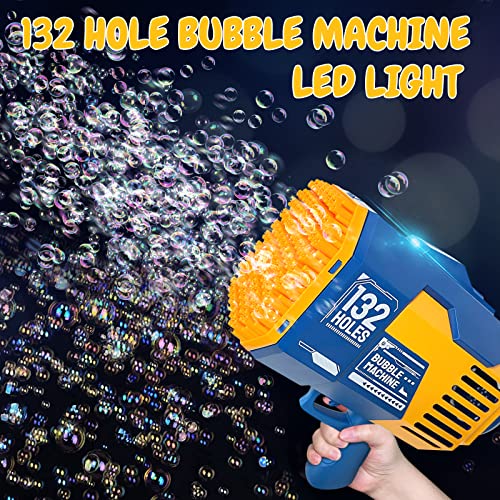 DODARK - 132 Hole Bubble Machine Gun Bubble Blower - Bubble Gun Blower with Colorful Light, Big Rocket Boom Bubble Toys, Big Bubble Maker Guns Toys Wedding Outdoor Indoor Birthday Party Favors Gift(Blue)