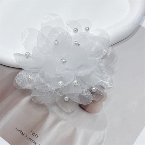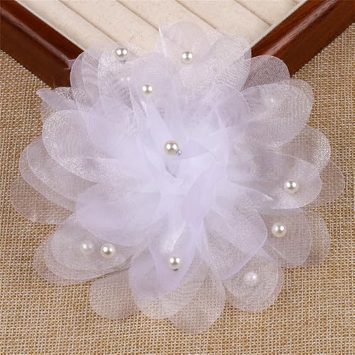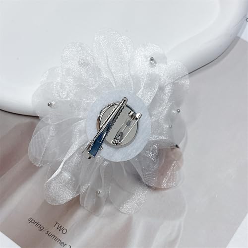 Dtja - 13cm/5in Beaded Mesh Flower Brooch Pin for Women Girls Dainty Round Shell Pearl Ball Beads Camellia Peony Flowers Brooches Lapel Hair Pins Elegant Wedding Anniversary Accessories Jewelry