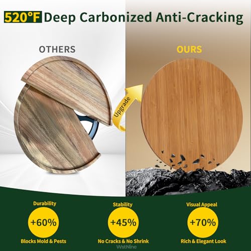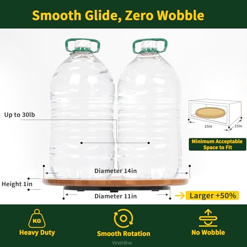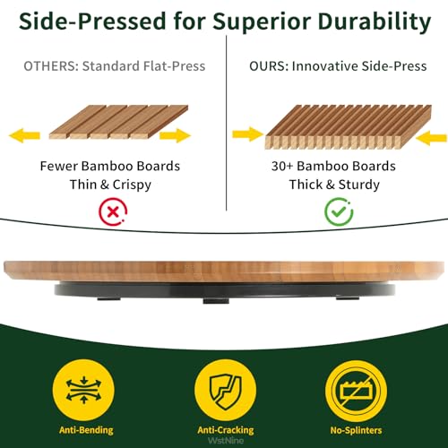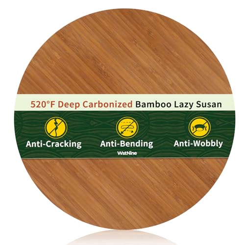 WstNine - 14'' Carbonized Bamboo Wood Lazy Susan Organizer, Turntable Organizer for Spices, Cabinet, Pantry, Kitchen, Bathroom, Natural Bamboo Color, Smooth Rotating Tray