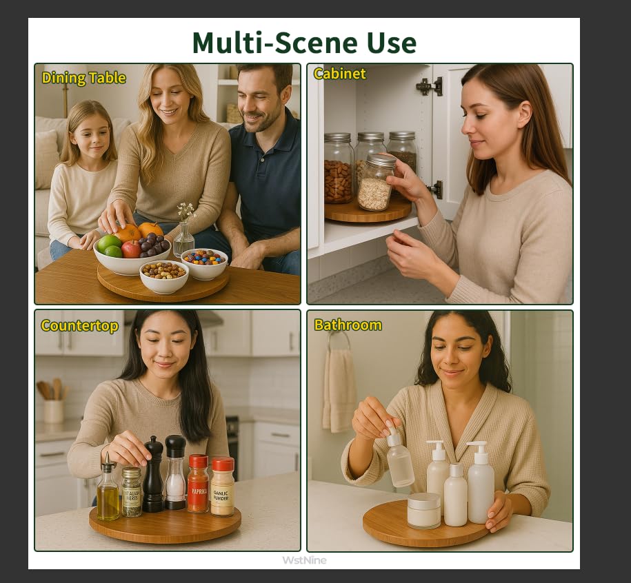 - Premium Carbonized Bamboo - Crafted from 100% natural bamboo, this Lazy Susan is both sustainable and durable, offering a stylish and environmentally conscious addition to your home.