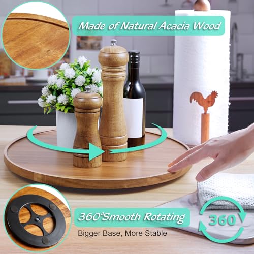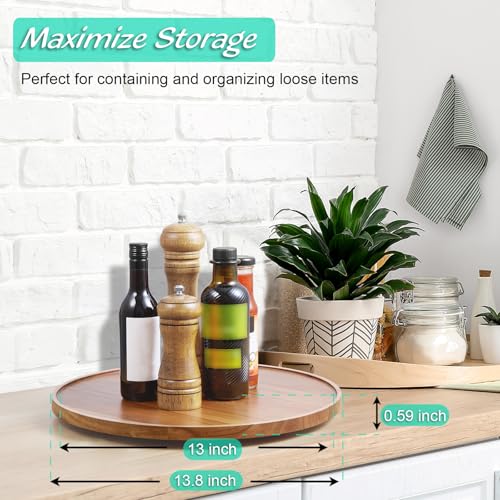 Bivvclaz - 14" Lazy Susan Turntable Organizer for Cabinet, Acacia Wood Lazy Susan for Table Top Dining Pantry Countertop Cupboard Organization, Decorative Tray for Kitchen Bathroom Decor Coffee Bar Accessories
