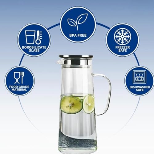 - High quality glass jug with tight lid keeps drinks fresh and prevents leakage