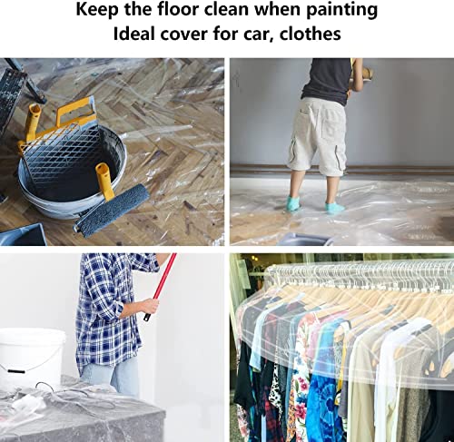 Hersent - 146"/12ft Plastic Couch Cover, Waterproof Furniture Protector for Sectional L-Shape Sofa, Extra Large Bed Chair Furniture Cover for Moving and Storage