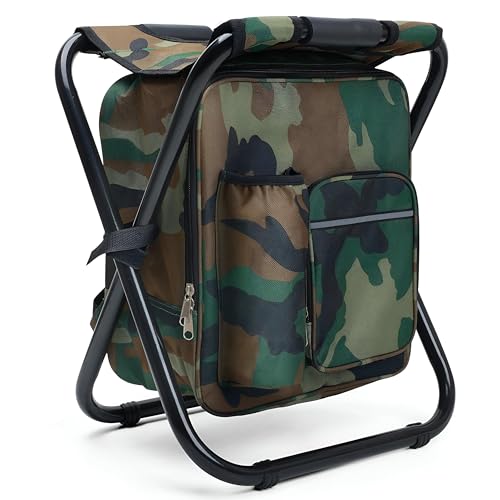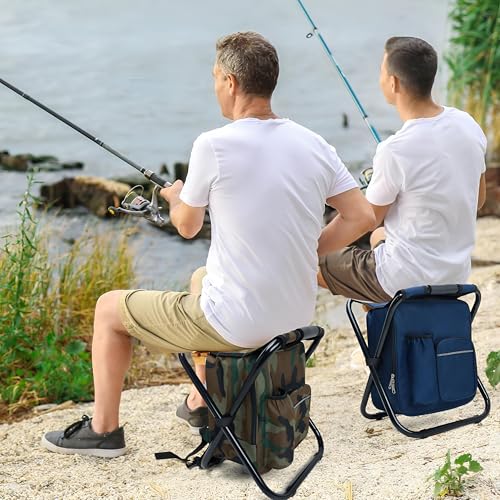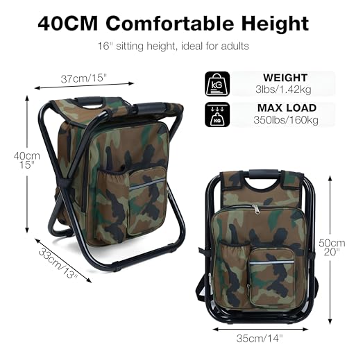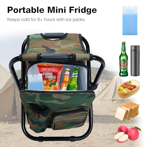 Generic - كرسي رحلات قابل للطي مع حقيبة ثلاجة 15 لتر – Backpack Folding Chair with 15L Cooler Bag, 158kg Capacity, Ideal for Travel, Fishing & Outdoor Picnics