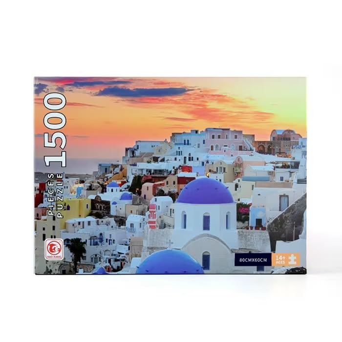 Generic - لعبة بازل مكونة من 1500 قطعة، لعبة تركيب صور للبالغين، بازل تركيب صور بتصميم جزيرة سانتوريني اليونانية، 60 × 80 سم