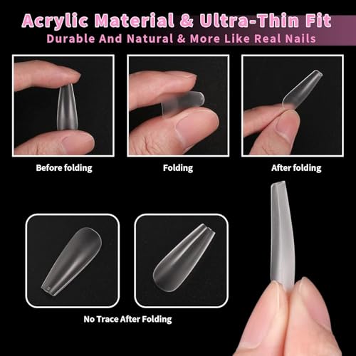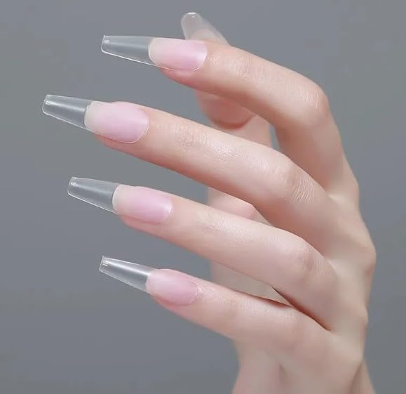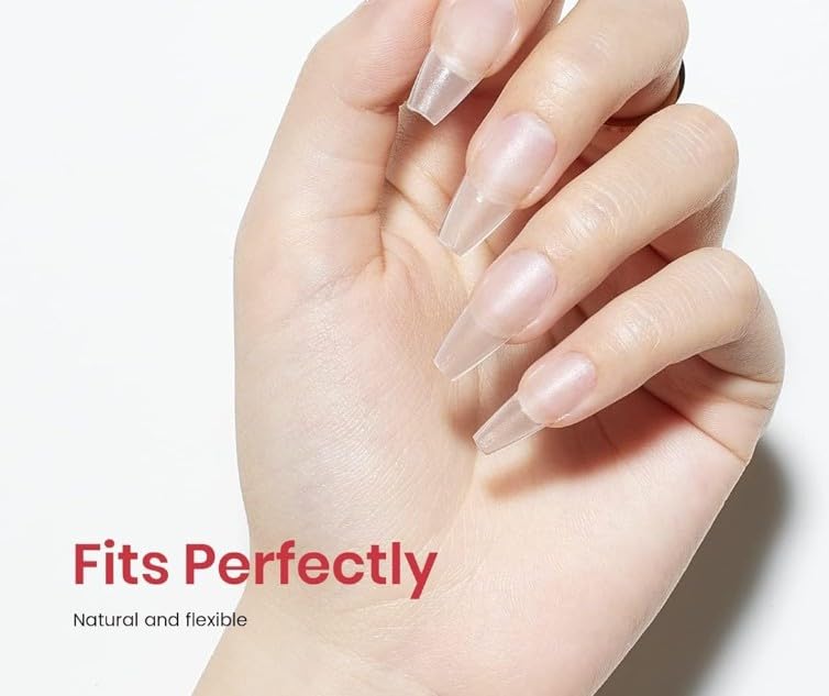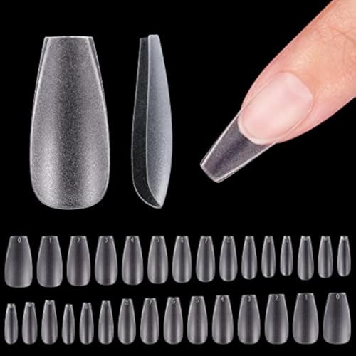 Generic - 150PCS Long Coffin Nail Tips, No File Nail Tips, Clear Matte Coffin Full Cover, Soft Gel Full Cover for Soak Off Nail Extensions kit, 15 Sizes-MATTE