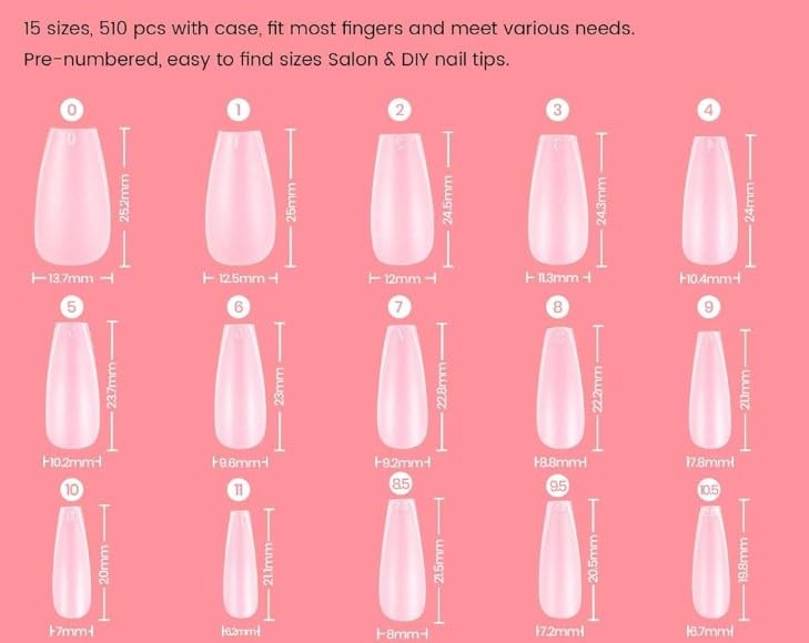 - 12 colors fake nails colored ballerina medium press on nails coffin, desighed in 10 different sizes, size 5 and 6 have extra pieces, total 288pc glue on nails, can fit most fingernails.