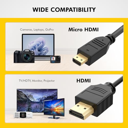 - HDMI 4K RESOLUTION SUPPORT - This Micro-HDMI to HDMI adapter cable can perfectly stream 4K video, including resolutions of 3840x2160, 2560x1600, 2560x1440, 1920x1200, and 1080p – BI-DIRECTIONAL Connectivity: Supports both Micro HDMI to HDMI and HDMI to Micro HDMI connections, enabling seamless streaming from various devices to your HDTV or projector.