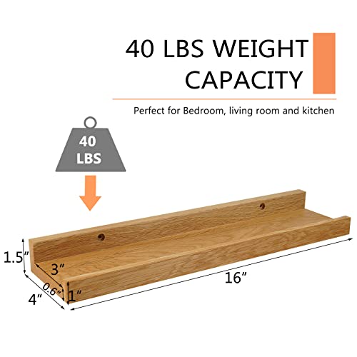Recogwood - 16 Inch Floating Shelves Wall Mounted Set of 2, Rustic Wall Shelves for Decor and Storage, Natural Solid Oak Wood Shelf, Picture Ledge for Bedroom/Bathroom/Living Room/Kitchen, Natural Color, 16*4*1.5