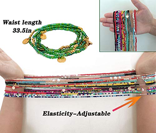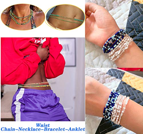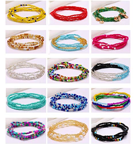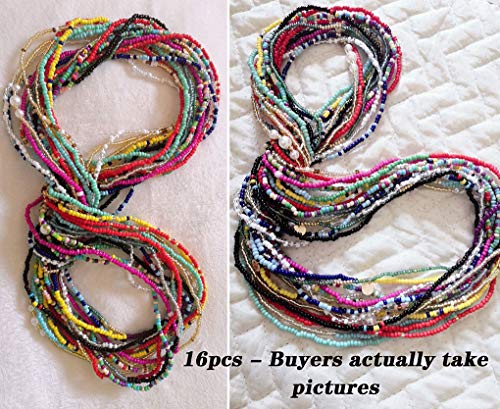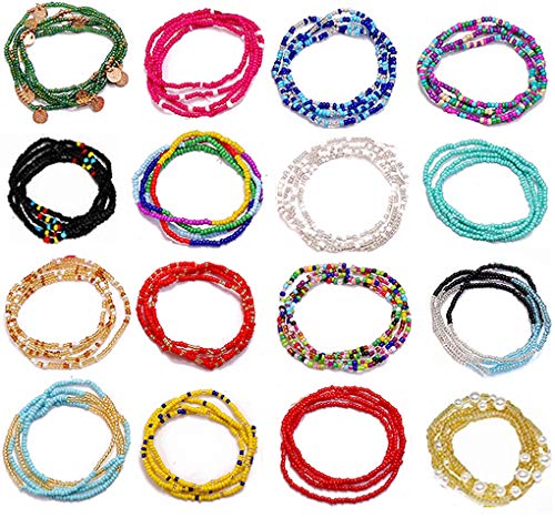 Rsdzsw - 16 Pieces Jewelry Belly Waist Bead Kits- Multi-Color Necklace Chain Colorful Elastic Beads,Style 16 Summer Beach Layered Belly Beads Body Chains African Bikini Jewelry Chains Sexy Bracelet Anklet