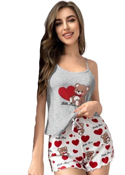 Generic - بيجامة هوت شورت للنساء قطعتين مقاس موحد كود 1623 لون رمادي