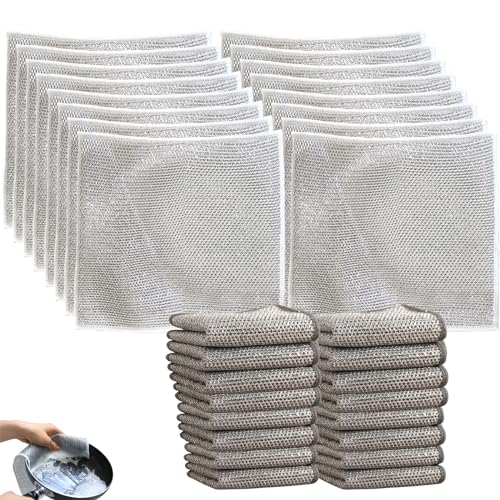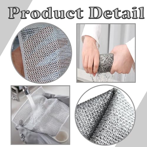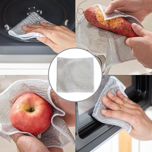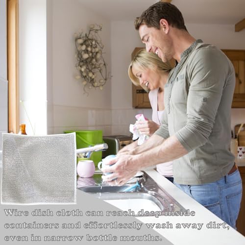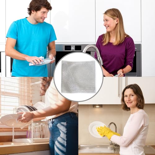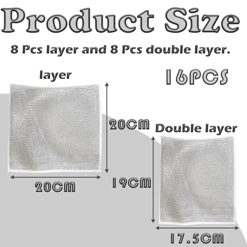 - 🍽️Packaging Content :16 Pcs multipurpose wire dishwashing rags for wet and dry. 8 Pcs layer and 8 Pcs double layer. To meet your daily replacement needs.The fine-hole design makes it very foamy. You can wet it and use it to clean tableware, pots, etc. efficiently, or you can use wire dishwashing rag directly to clean grills, stoves, etc.