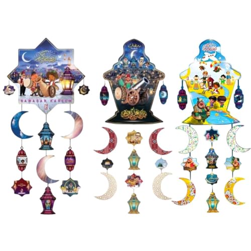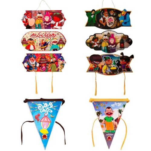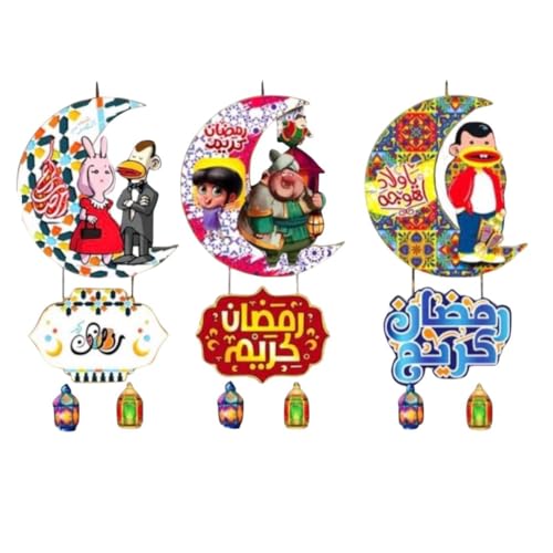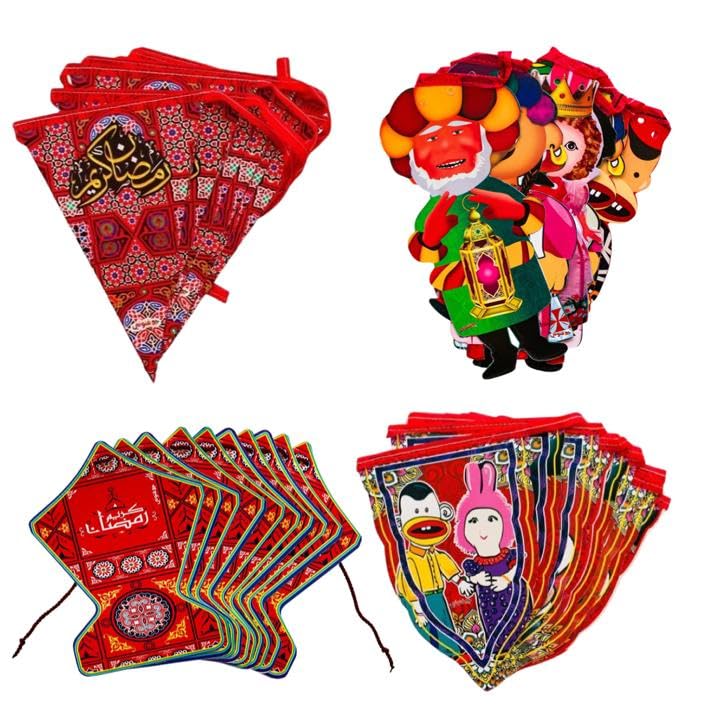 Generic - كرتون رمضان زينة رمضان من فنوني (17 قطعه) داخل الصندوق - زينة رمضان للمنزل 15 قطع زينة عالي الجوده + 1 فانوس اسلامي 15 سنتي + 2 داليه رابر جلد مجسم بوجي وتمتم