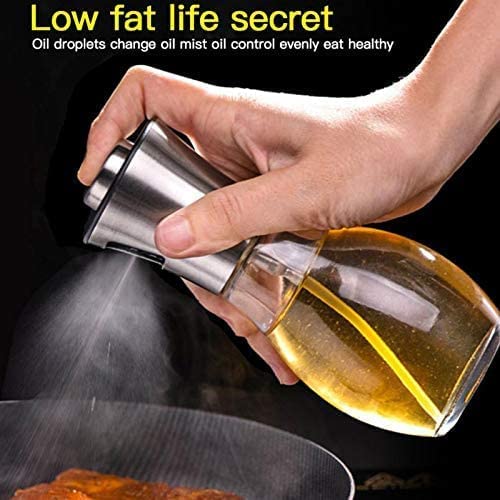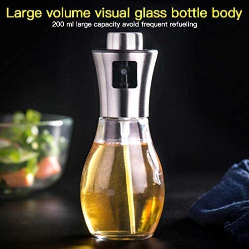- High-quality material: oil sprayer made of high-quality stainless steel 304 and 200 ml transparent glass bottle in food grade, BPA-free and environmentally friendly, 100% food safety, ensure food safety. Oil spray bottle is a great kitchen tool when cooking.