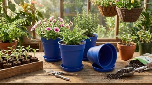 - 1)Set of 4 Practical Home Farming & Decor Bowls Set of 4 Plantation Pans suitable for decorative plants, flowers, herbs and seedlings, coordinate your balcony, garden, shelves and entrances, suitable for home cultivation lovers and preparing a stylish plant corner indoors or out