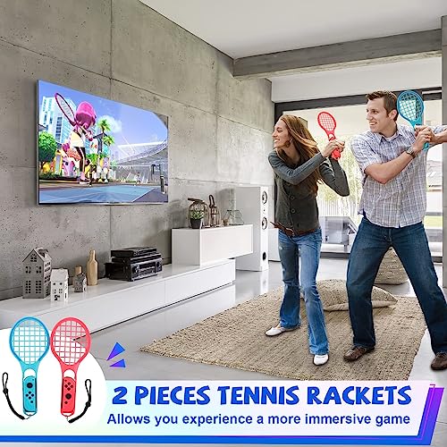 - 🎮【Play Swtich Sport Anywhere, Anytime】Our products are fully equipped to let you play Swtich, and the tennis racket is perfect for experiencing the NS Switch Mario Tennis Aces, which simulates a real tennis match and can also be used as a badminton racket. Swing the golf club, transform your joycon into Mario Golf Super Rush golf club. Make your switch game more realistic and it brings more joy and fun for your family.
