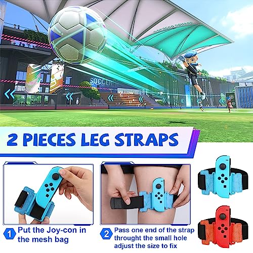 - 🎮【Unique Design】This Switch sports set is for Nintendo with lightweight and ergonomically designed to make it easier to set up and play for adults and children alike. The wrist and leg straps are adjustable with adhesive tape, so players don't have to worry about dropping them while playing. It frees up your hands for a more enjoyable gaming experience. The ability to move your hands freely. A great accessory for JUST DANCE, allowing you to enjoy your games and get fit at the same time.