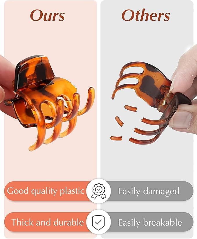 - One Size Fits Most: The small claw hair clips are suitable for most types. You can wear them every day to create a beautiful look. The toothed design can handle any thick or thin hair well, and they will hold your hair tightly without pulling or damaging your hair.