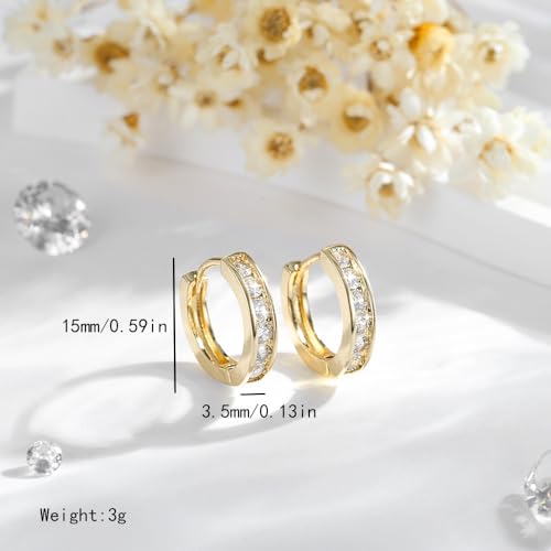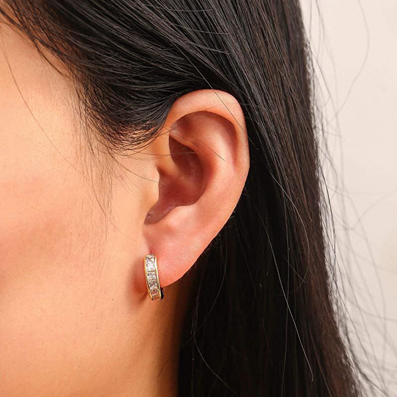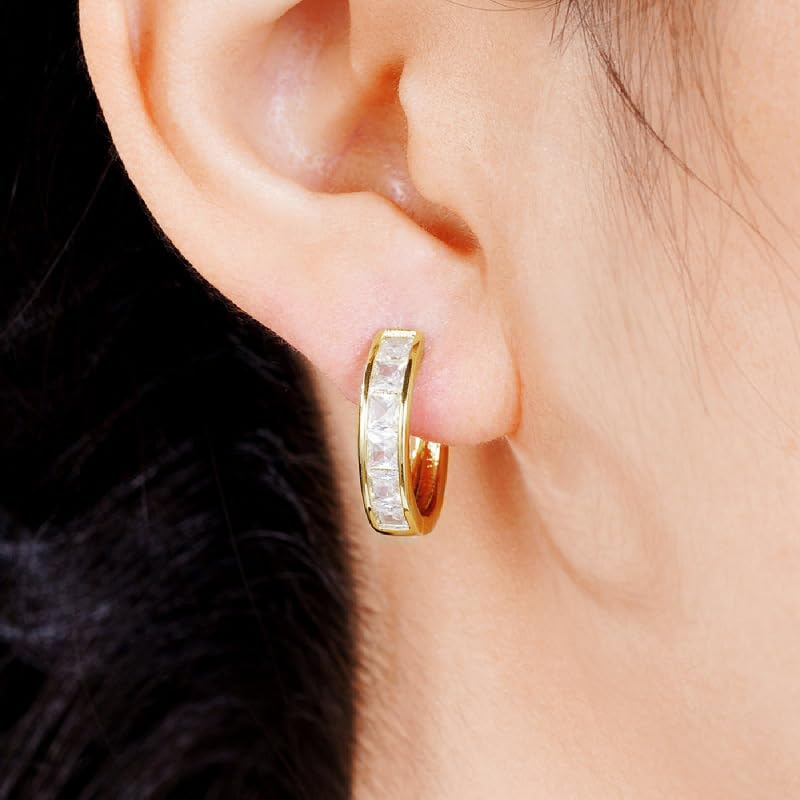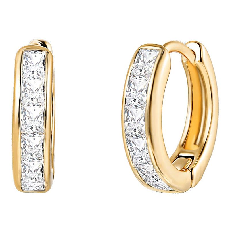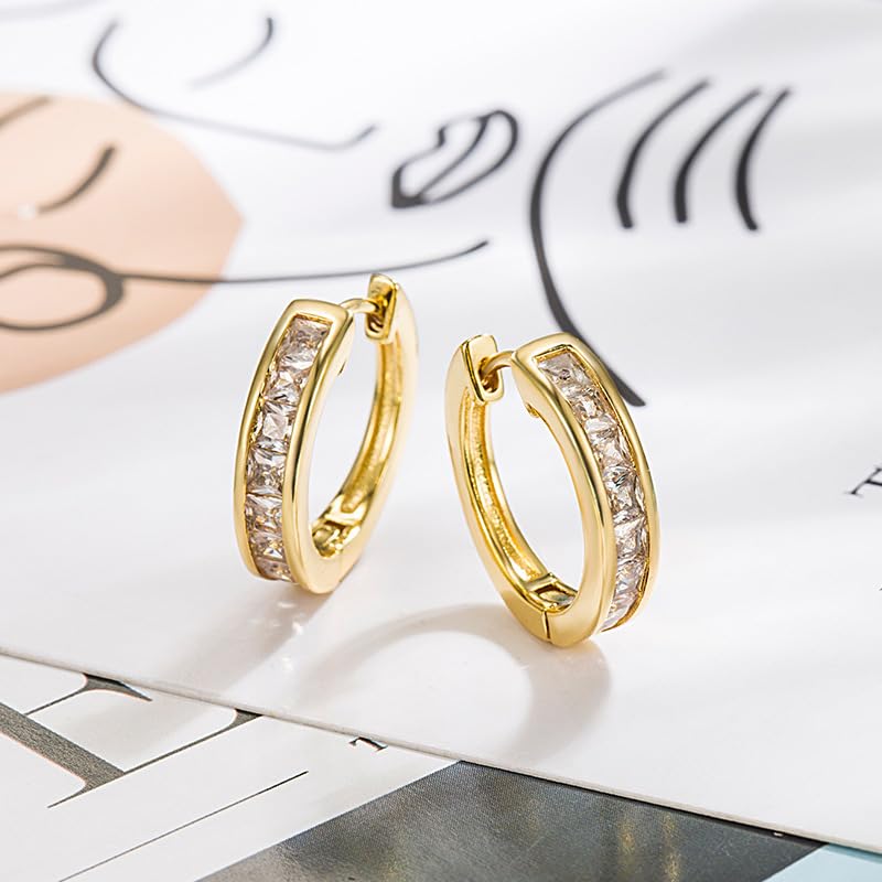 FRIDAYIN - 18k Gold Plated Crystal Hoop Earrings with Rhinestones, Beautiful Cubic Zirconia Huggie Cuff Small Hoops Earring