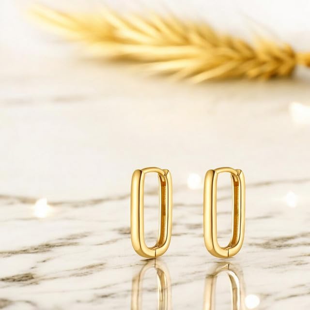 Generic - 18K Gold Plated Dainty Hoop Earrings Long Lasting Fashion Women Jewelry Rectangular Round Shape Durable