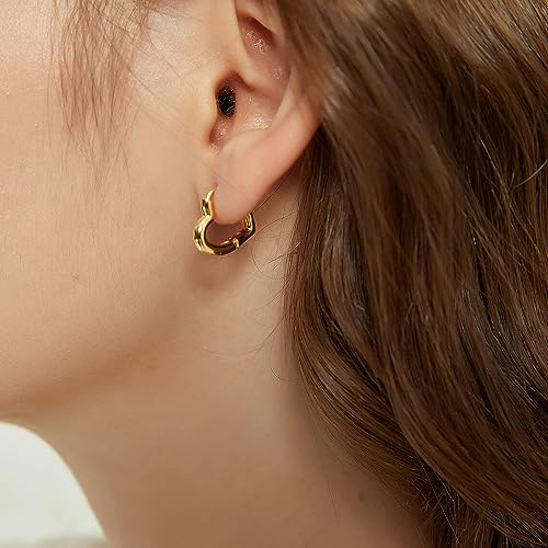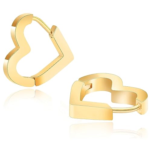 Generic - 18K Gold Plated Heart Shape Hoop Earrings for Women Stainless Steel Hoop Earrings Gold Small Chunky Earrings Jewelry Gift By Julia Store