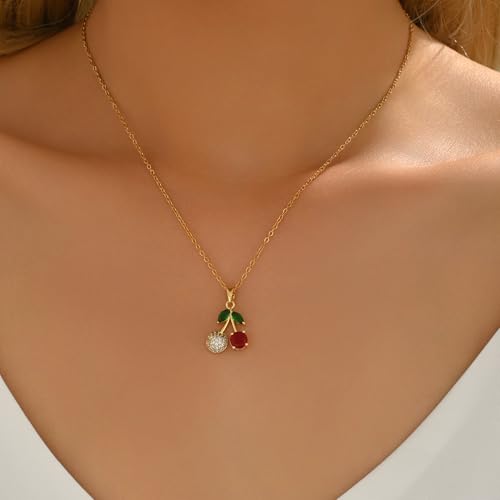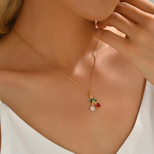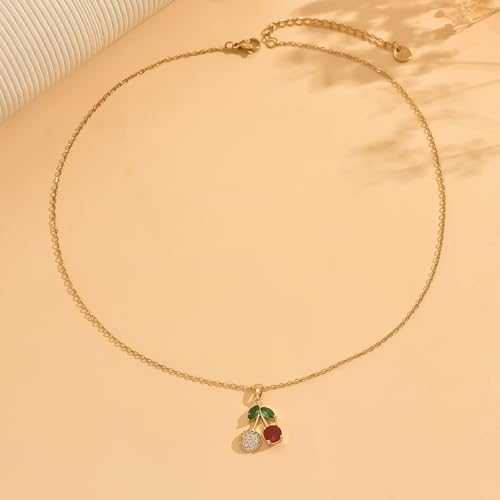 for your Beauty - 18K Gold Plated Necklaces for Women Dainty Sun Cherry Maple Leaf Strawberry Pendant Necklace Simple CZ Diamond Link Chain Trendy Gold Festival Jewelry