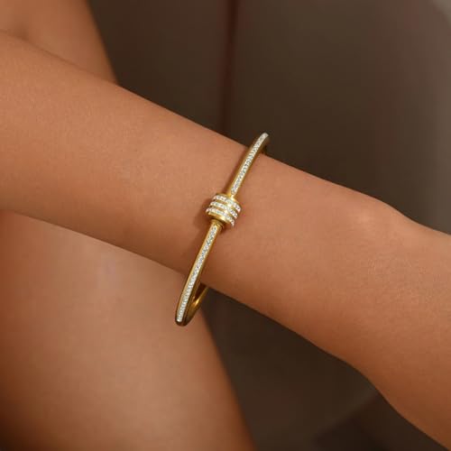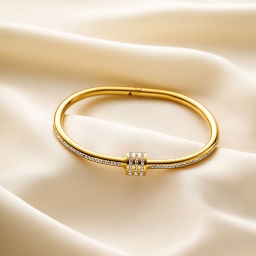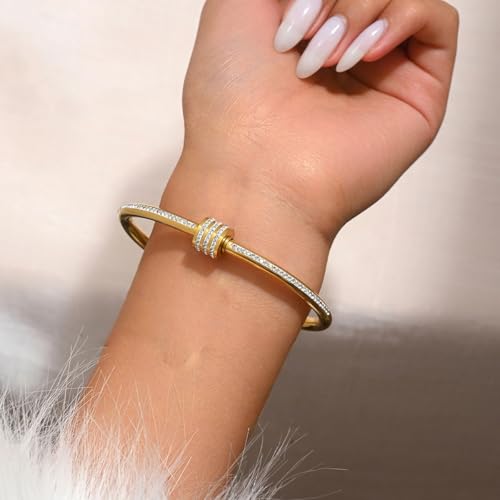 FRIDAYIN - 18k Gold Plated Stainless Steel Bracelet Suitable For Party And Daily Wear Inlaid With Sparkling Cubic Zirconia Suitable As a Gift For Girls Women Friends Weddings Birthdays Valentine's Day