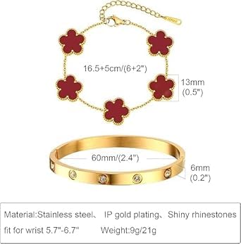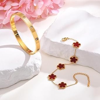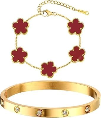 Generic - 18K Gold Plated Stainless Steel Love Bracelets for Women - Lucky Flower Friendship Bracelet Zircon Bracelet, Fashion Gifts Jewelry for Women