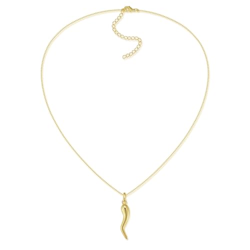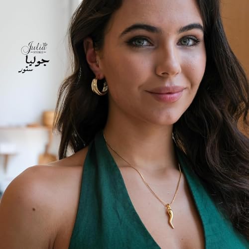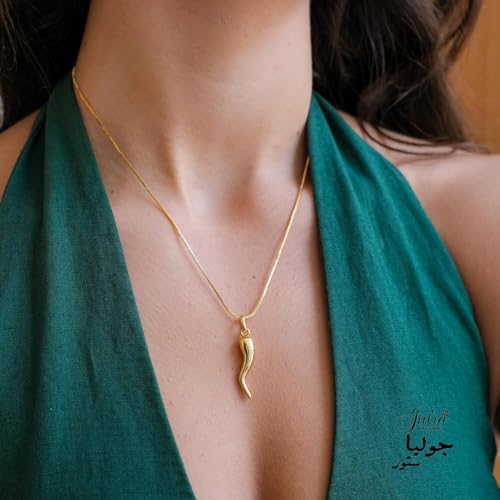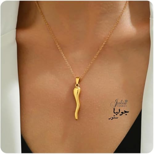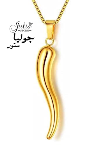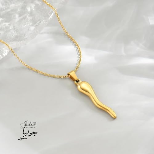 Julia Store - 18K Gold Plated Stainless Steel Lucky Trendy Luxury Celebrity Chili Symbol Of Hot Love Cornicello Italian Horn Pepper Necklace Charm Pendant Jewelry Gift For Women Girls Men